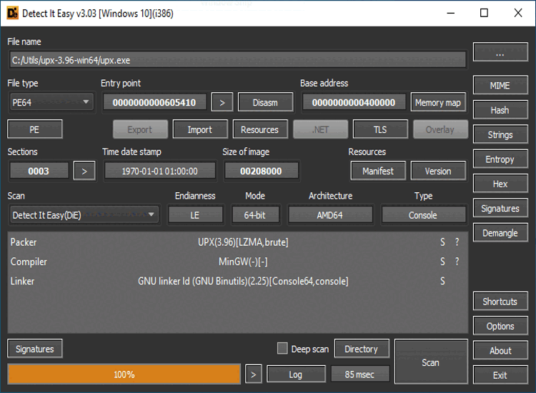 Detect It Easy 3.05 - 실용적인 패킷 식별자